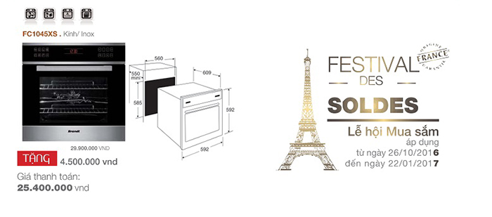 – Festival des Soldes – Sẽ mang đến cho Quý khách hàng cơ hội đặc biệt sở hữu sản phẩm Brandt, Thương hiệu số 1 nước Pháp với nhiều ưu ái dành cho người tiêu dùng Việt.